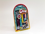 A Creo kezdő szett 3 db filctollat, 1 db filctoll befogót és 3 db sablont tartalmaz. A toll különlegessége, hogy pöttyözve karikákkal színezhetjük a sablonokat.